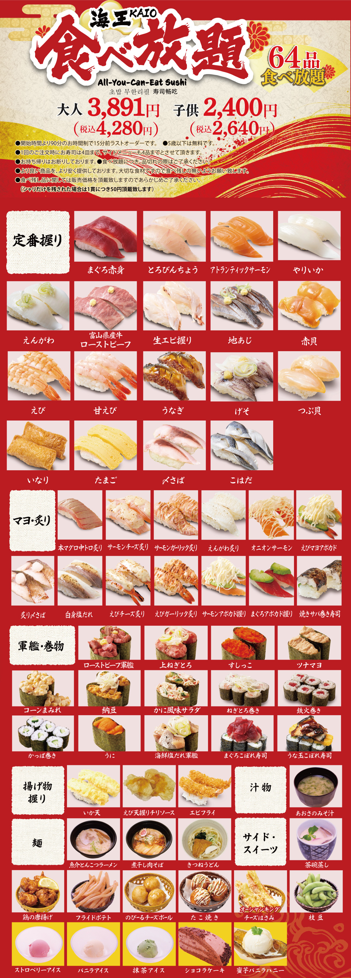 食べ放題プレミアムコースを割引価格でご提供いたします。 - 今だけお得!10/1~12/31まで「お持ち帰り寿司 / TAKEOUT MENU」を10%OFFで販売!